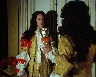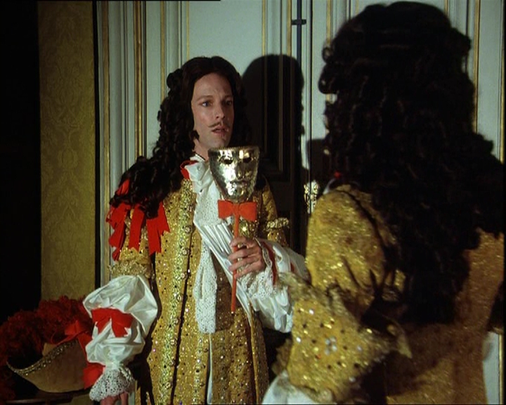 Soberbamente filmado em dois palácios em França (nenhum efeito especial reproduziria a beleza realista destas localizações), ‘The Man in the Iron Mask’ tem um fabuloso uso de exteriores (então as cenas da corte, nos jardins do rei, são incríveis) e um cativante uso de interiores, o que permite alimentar a sua alma fantasiosa e transportar o público para pleno século XVII. Ainda recentemente vi ‘A Little Chaos’ (2014) de Alan Rickman, também passado na corte do Rei Sol, e apesar dos meios modernos e da assistência do computador, a atmosfera nunca está tão bem captada. Aqui o filme ganha com a, digamos, ‘sujidade’ inerente ao cinema dos anos 1970, afastando-se do estilo de ironia sarcástica e muitas vezes kitsch de ‘The Three Musketeers’ (1973), para oferecer um vincado sentido de realismo. caracterizado pela fotografia e pelos cenários mais naturalistas (materializados em composições de grande beleza), mas também por subcorrentes de subtil intensidade. A mistura, talvez paradoxal destes elementos; por um lado a plena fantasia de um romance histórico com soberbo guarda-roupa, design de produção e fotografia a condizer, e por outro uma aura mais negra que tanto paralelismo tinha na década em que o filme foi feito (veja-se os toques de paranóia que Louis XIV demonstra e o desespero de Phillipe na prisão) – torna cada cena desta obra incrivelmente fascinante.