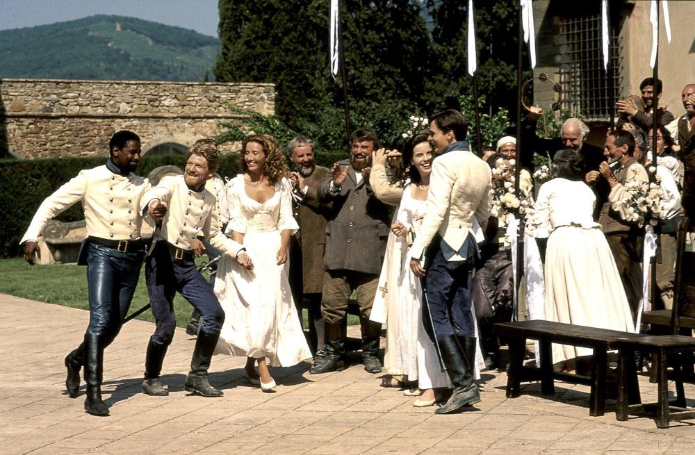 Ora, após ‘Henry V’, Branagh esperou 4 anos para realizar a sua segunda adaptação shakespeariana no grande ecrã. Inteiramente filmado durante o Verão numa ‘villa’ no sul de Itália (maioritariamente em exteriores) ‘Much Ado About Nothing’ é a quintessência da fórmula moderna: conceituados actores de palco ingleses misturados com estrelas de Hollywood, juntos em maravilhosas localizações, contracenando em cenas de ritmo dinâmico, conteúdo facilmente perceptível e com contenção (ou eliminação) dos longos monólogos. Se esta fórmula se tornou norma nas adaptações Shakespearianas do novo milénio este filme tem, contudo, algo que quase nenhum filme, de qualquer espécie, natureza ou contexto tem: uma magia intrínseca própria, para além da história, para além da actuação, para além das palavras do Bardo. Este filme tem uma ligação inacreditável entre os actores, um elo de amizade e prazer no trabalho que estão a executar que passa, mais que perceptivelmente, para o espectador.