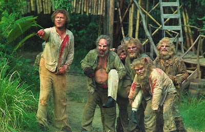 Em 1977, na linha de uma nova vaga de ficção científica pós-apocalíptica na senda de ‘Planet of the Apes’, e do cinema de alienação que o estado social dessa década trouxe, a MGM decidiu fazer uma adaptação de ‘The Island of Dr. Moreau’, com Don Taylor como realizador (que havia precisamente realizado uma das sequelas de Planeta dos Macacos). Este livro, o segundo de Wells, foi publicado em 1896, e introduziu ao mundo um conceito que até então virtualmente não existia: o das experiências genéticas (tal como havia introduzido o conceito ‘novo’ de viagens no tempo em ‘The Time Machine’ de 1895 e iria introduzir o conceito de ‘universos paralelos’, ‘homem invisível’ e ‘ataque de extra-terrestres’ em livros subsequentes que hoje fazem parte do nosso imaginário mas que até Wells não existiam). Mas ‘The Island of Dr. Moreau’ tem um significado para além da ficção científica das experiências genéticas. Na realidade, é uma metáfora social que tenta provar que nenhum povo, ou nenhum ser, consegue ir contra a sua verdadeira natureza. ‘The Island of Dr. Moreau’ já tinha sido filmado antes, como ‘Island of Lost Souls’ em 1932, com Bela Lugosi e Charles Laughton no papel de Moreau (que infelizmente nunca vi), e seria filmado em 1996 numa adaptação péssima (vi e comprovo) com Val Kilmer e Marlon Brando como Moreau, em que todo o livro foi corrompido e transformado num blockbuster de acção do pior nível que pode haver. O filme de 1977, por seu lado, tem duas fases distintas, claramente divididas em ‘a parte que é fiel ao livro’ e ‘a parte que não é’.