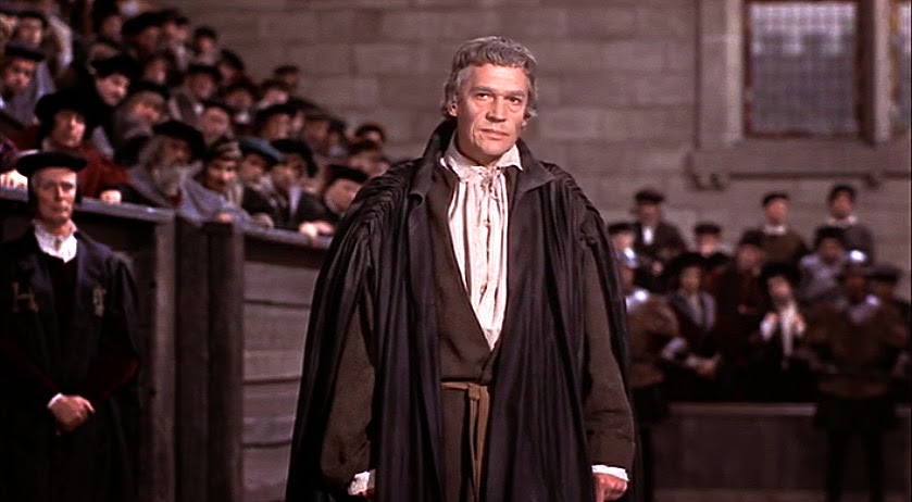 Tudo gira à volta das emoções subjacentes aos diálogos, que são mais poderosas que armas. O filme depende única e exclusivamente desse poder, que vibra imponente se for bem conseguido (e neste caso é), e da energia e talento dos actores para nos transmitirem esse poder. Estamos a falar de um filme sobre os últimos anos de vida de Thomas Moore, um filósofo do século XVI, e convenhamos que isto poderá não ser o tema mais apelativo para o cinéfilo que não tenha um gosto pela História. Mas por algum motivo a peça ganhou o Tony (os Óscares do Teatro) para Melhor Peça, e também para Melhor Actor (igualmente para Scofield que repetiu o seu papel no cinema, no qual era quase um estreante - entrara em 'The Train', 1964, de John Frankenheimer). É assim tão boa. E estamos a falar de uma altura (anos 1950 e 1960) em que este tipo de filmes poderosos de actuação, baseados em peças de teatro igualmente poderosas de actuação, atingiu o seu clímax, encimadas por estrelas da Hollywood clássica, rostos novos e vibrantes saídos do Actor’s Studio, ou nomes dos palcos ingleses. Estou a falar de pessoas como Marlon Brando, Katherine Hepburn ou Elizabeth Taylor. Pensemos em qualquer adaptação das peças de Tenesse Williams, ‘A Streetcar Named Desire’ (1951), ‘Cat on a Hot Tin Roof’ (1957), ‘Night of the Iguana’ (1964) ou ‘Sweet Bird of Youth’ (1962). Pensemos em ‘Suddenly Last Summer’ (1959), ‘Long Day’s Journey into Night’ (1962) ou ‘The Lion in Winter’ (1968). Aos melhores elementos destas entradas ‘A Man for All Season’ acrescenta a vertente do filme de época, os seus ideais e o facto de ser baseado, até certo ponto, em factos verídicos, elementos estes que são sempre do gosto dos críticos e que, verdade seja dita, ajudam a acomodar o espectador na trama, embora neste caso nunca a esganem.
