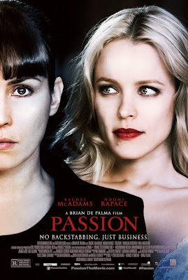 Hoje em dia, quando Brian De Palma lança um novo filme, isso já não constitui propriamente um evento. Tal como outros realizadores outrora apelidados de génios, como Coppola, De Palma vive muito da reputação, e os seus filmes, feitos fora dos grandes estúdios e muitas vezes em co-produções com companhias europeias, circulam pelos festivais mas não têm propriamente uma grande distribuição mundial nem muito destaque na crítica e na imprensa. Em quantos locais deste país passou ‘Twixt’ (2011) o último filme de Coppola? De acordo com o imdb, o filme nem sequer chegou a passar nas salas de cinema, tendo sido exibido pela primeira vez em Portugal numa televisão por cabo precisamente há um ano, em Maio de 2014. E quase o mesmo ocorreu com ‘Passion’. Datado de Setembro de 2012, chegou a Portugal apenas em Julho de 2013 e lembro-me que pouco mais de uma semana ficou nas salas de cinema. Quando tive disponibilidade para o ir ver, já tinha saído de exibição. Portanto só ontem é que finalmente lhe pus a vista em cima. Não é completamente injusto, porque o filme não merece uma gigantesca ovação, mas mesmo assim é um pouco irónico como o mercado do cinema por vezes trata os seus velhos senhores, a quem outrora fez enormes vénias.