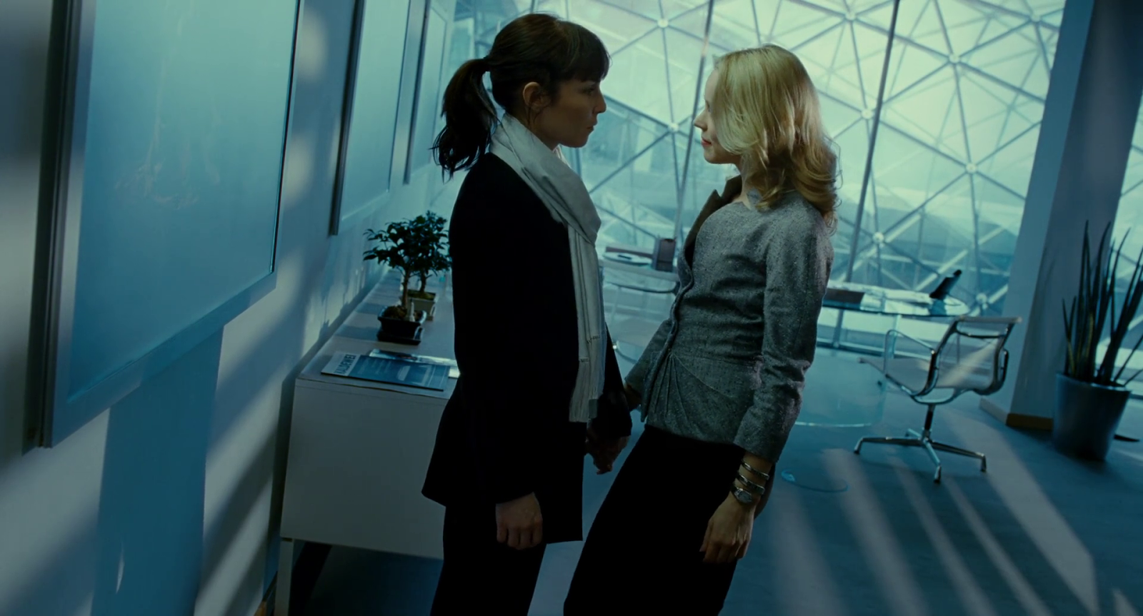 Até aqui tivemos a construção com personagens extremamente bem delineadas e com um excelente ritmo. A Christine de McAdams é ambiciosa, sem escrúpulos, e usa a sua beleza e o seu charme para manipular as pessoas, quer no trabalho quer na sua vida pessoal, onde tem um enorme gosto pelo sexo ‘kinky’. Já a Isabelle de Rapace é oferecida ao espectador mais lentamente (o filme é contado na sua perspectiva) e vemo-la gradualmente a evoluir e ganhar confiança em si própria, à medida que a sua devoção por Christine se dissipa e se transforma em ódio. A partir do momento em que se dá o choque entre ambas, o filme envereda numa teia de enganos e conspirações, em que claramente cada uma parece ter uma agenda escondida para destruir a outra. E neste ponto o filme prende imenso o espectador, mas a verdade é que também não faz nada de transcendental, e toda e qualquer coisa que acontece parece encaixar-se no padrão exacto daquilo que esperaríamos que acontecesse num thriller deste género.