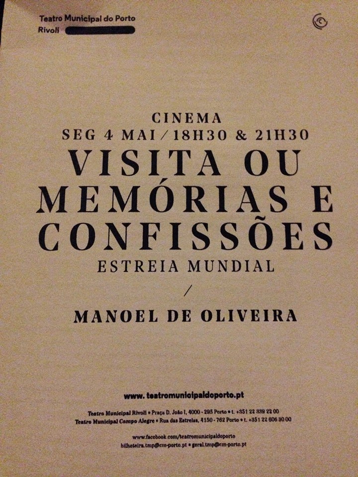 Crítica: Na passada segunda-feira, cortesia do meu prezado pai, obtive um bilhete para assistir à estreia mundial do filme inédito do recentemente falecido Manoel de Oliveira, ‘Vista ou Memórias e Confissões’, que teve lugar no Teatro Municipal Rivoli, no Porto.