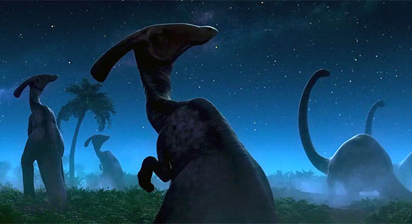 Claro que ao longo destas mini-aventuras Arlo vai crescer, ganhar valores e enfrentar finalmente os seus medos. Claro que Arlo vai encontrar o caminho para casa. Claro que no final vai ter uma estúpida e excessivamente dramática despedida de Spot, para forçadamente puxar à lágrima (porquê, não podem viver nas proximidades um do outro? Porque se estão a despedir como se nunca mais se fossem ver na vida?). Claro que Arlo vai deixar finalmente a sua marca aos olhos dos pais, embora exactamente o que ele tenha feito para a merecer me passe ao lado (a mãe não sabe como foi a sua aventura, tudo o que ela sabe foi que ele desapareceu um dia e voltou passado uns tempos – é isso merecedor de uma marca?!). Claro que o filme acaba numa nota elevada, como se o seu jovem herói tivesse adquirido a maturidade e tudo tivesse acabado em bem, embora continuem no fim do mundo sem ninguém à volta e destinados a uma existência solitária e cíclica de plantar comida. Depois da mãe morrer, como irão Arlo e os irmãos reproduzir-se se não há mais brontossauros neste universo? É assustador pensar.