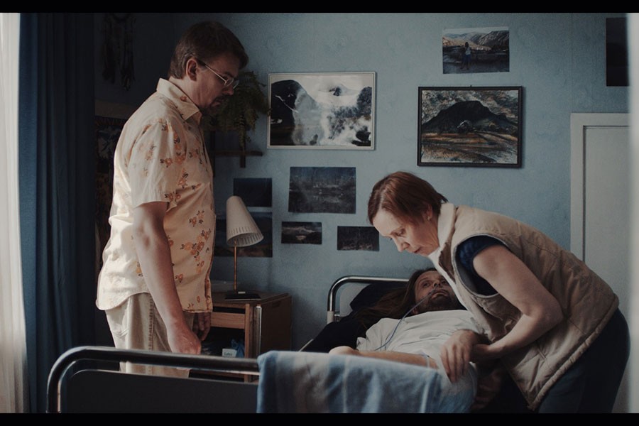 O enquadramento de ‘Ema’ é bastante simples. Nas cenas iniciais seguimos a “ema” (mãe em estónio), Elsa, enquanto ela compra fruta no mercado e depois ruma a casa, onde se dedica às tarefas domésticas com uma assertividade mecânica mas cuidadosa. Tiina Mälberg interpreta Elsa com segurança na sua insegurança, ou seja, representa um papel de uma personagem que representa um papel do qual não está totalmente convencida, apesar de o tentar encarnar com todas as suas forças. Isso explica alguma ambiguidade que a personagem tem, entre uma mãe coragem e uma mulher interesseira, com um levo travo de instabilidade emocional. Pois Elsa tem um fardo demasiado grande para suportar. O seu filho Lauri (Siim Maaten) está em coma há já algum tempo, vítima de um tiroteio misterioso, e permanece deitado ligado a tubos no seu quarto no andar de cima. É ela que tem de constantemente cuidar dele, visto que o seu marido é bastante alheado, preferindo passar os dias com os amigos e a cuidar do jardim, e as noites a ver televisão.
