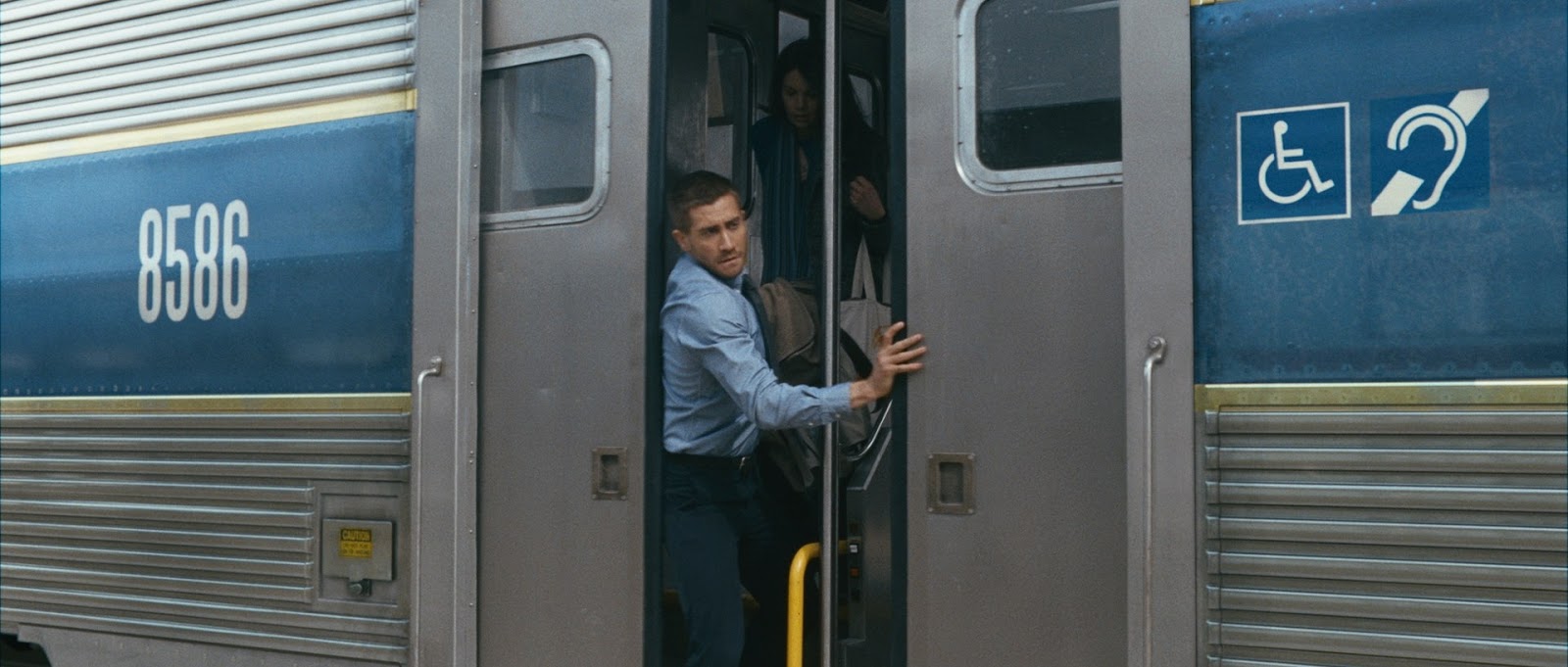 Depois do intenso genérico, o filme não perde tempo com contextualizações e mergulha o espectador imediatamente na acção. Jake Gyllenhaal (no pico da popularidade no cinema das “massas” após ‘Brokeback Mountain’, 2005; ‘Love & Other Drugs’, 2010; ou ‘Prince of Persia: The Sands of Time’, 2010) tem uma interpretação suficientemente credível (essencial para vender uma história destas) como Colter Stevens, um soldado Americano que serviu no Afeganistão. Na primeira cena acorda, atordoado, no comboio que será cenário para a maior parte do filme. À sua frente, Christina (a perfeita Michelle Monaghan, mas não será demasiado perfeita?) fala com ele naturalmente, chamando-lhe Sean. Numa manobra semi-kafkiana, Colter apercebe-se que está dentro de um corpo que não é o seu. Nós espectadores vemo-lo até ao final do filme como Gyllenhaal, mas com a subtileza típica de Jones (um breve plano num espelho) apercebemo-nos que todos os outros passageiros o vêm com outra cara, a do tal Sean.